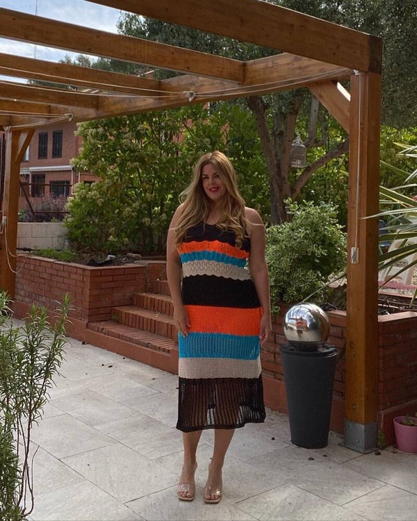 Vestido súper ponible de punto con abertura lateral.
