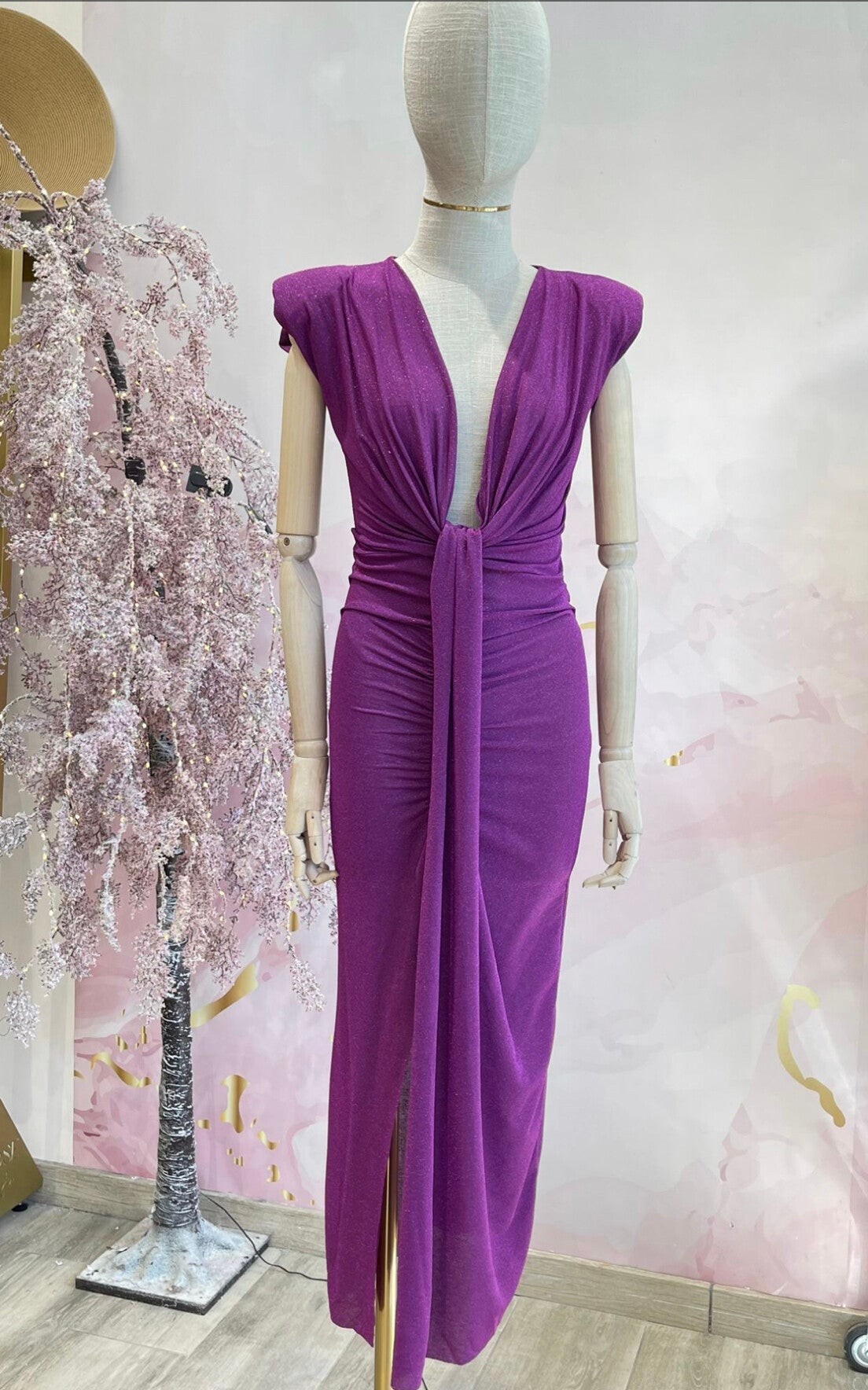 Siéntete una auténtica faraona con este vestido con hombreras,abertura sexy y escote pronunciado.