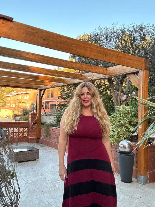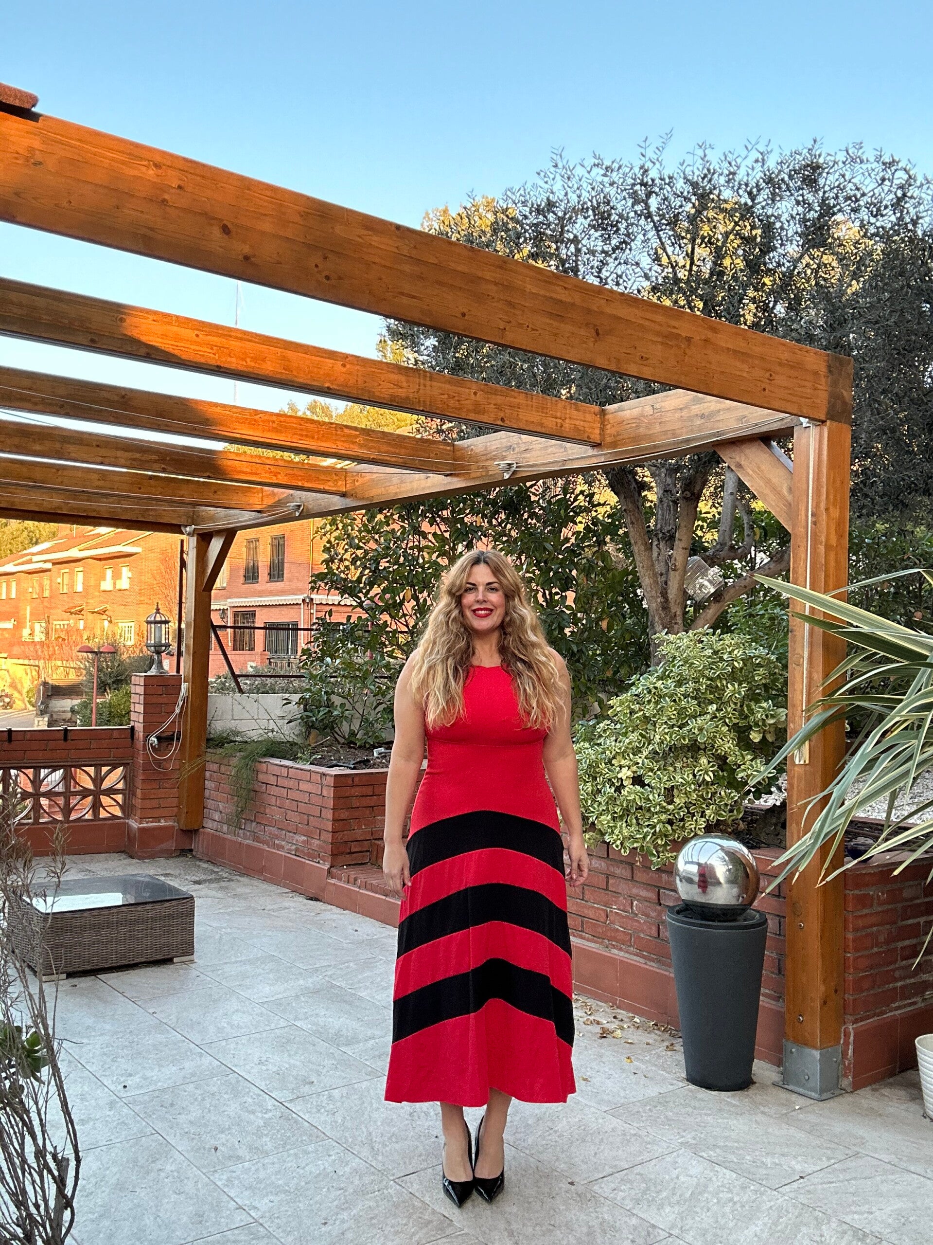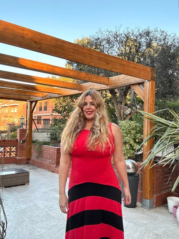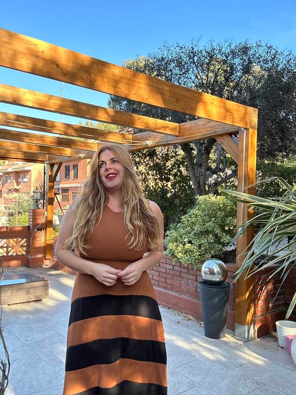 Precioso vestido con un corte espectacular, de asas con cremallera hasta mitad de la espalda.
