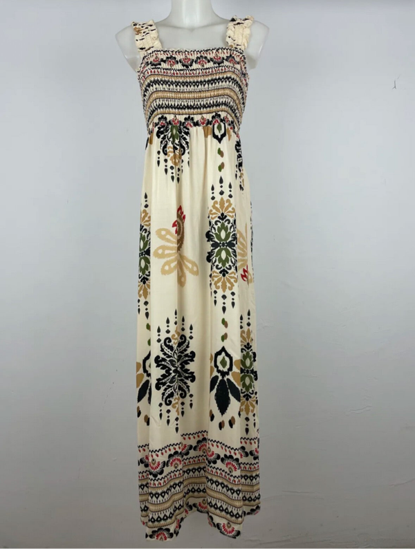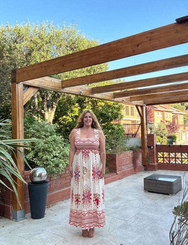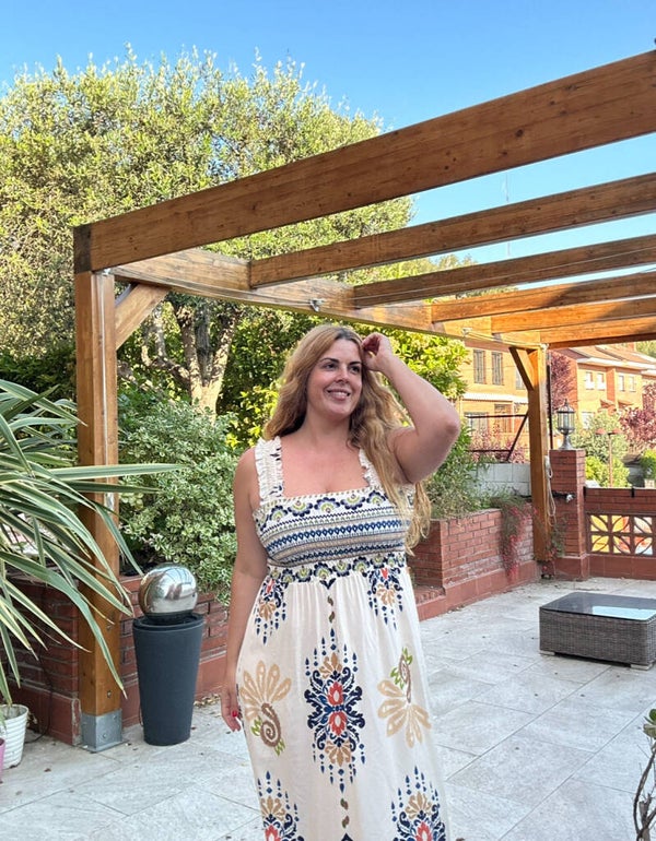 Precioso vestido con nido de abeja en el pecho y en la espalda.