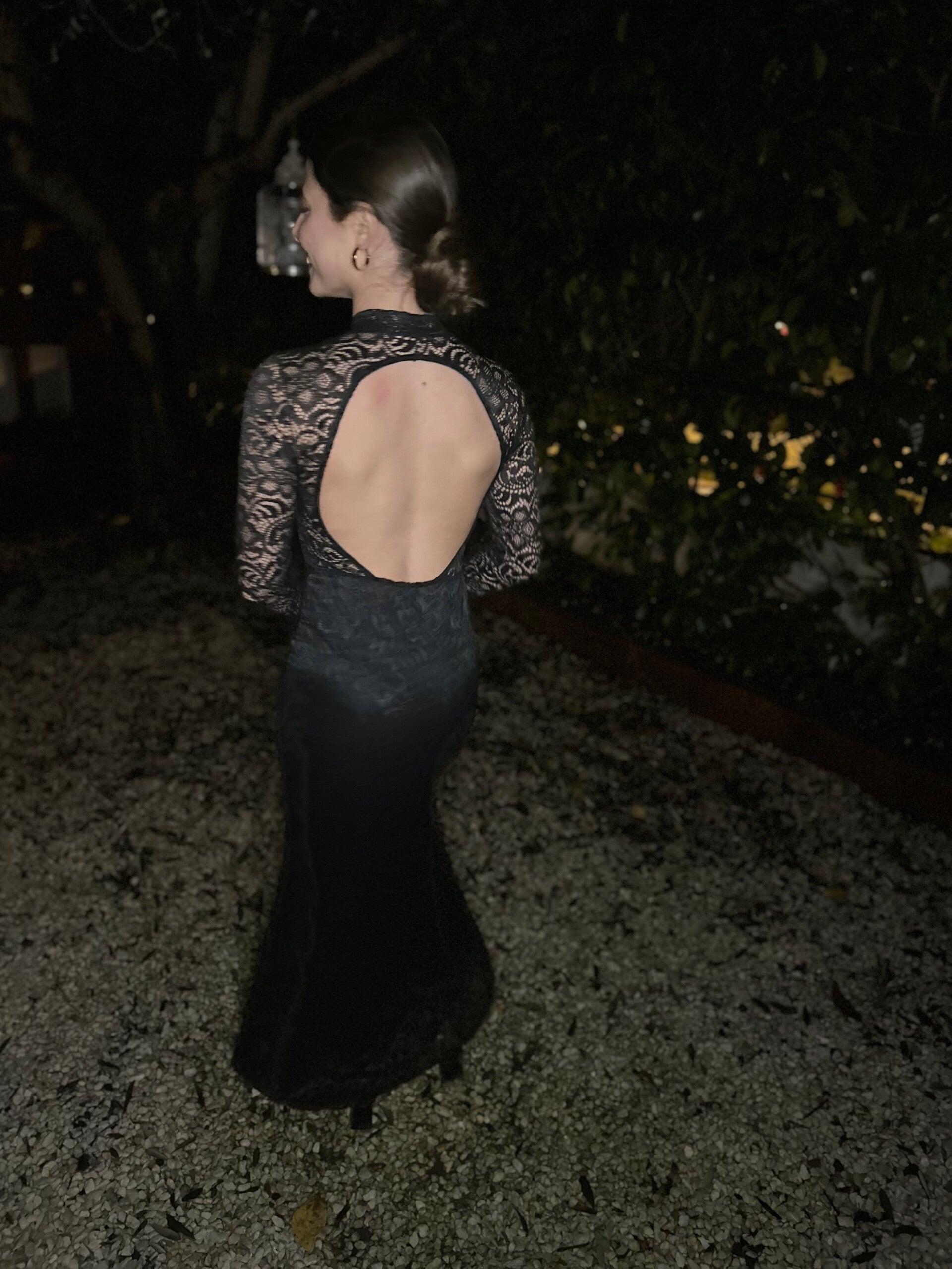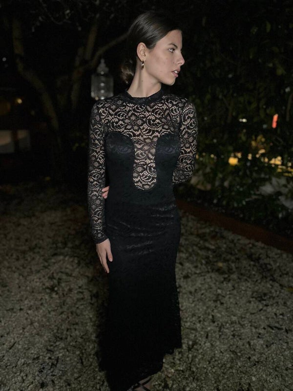 Precioso vestido de encaje con forro y espalda al aire.