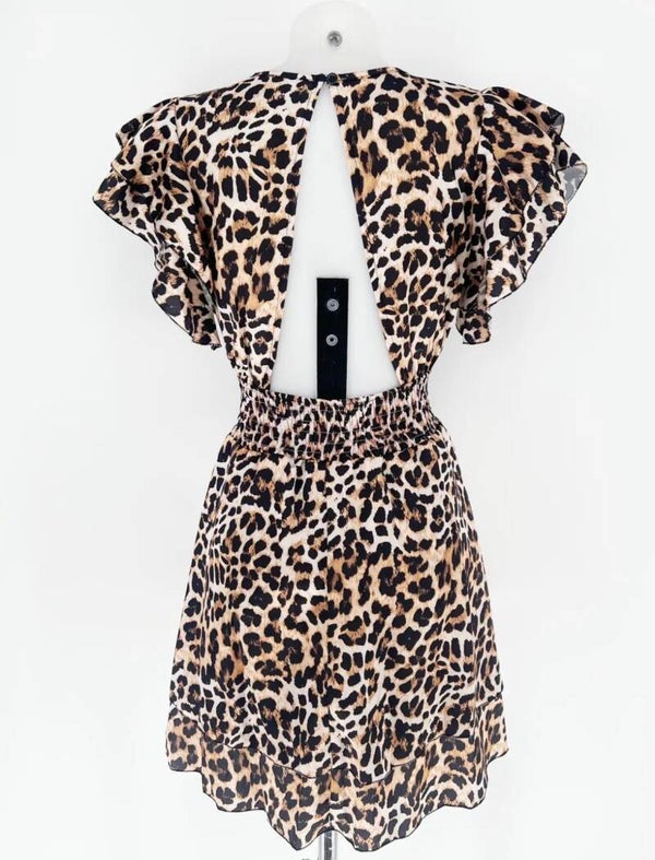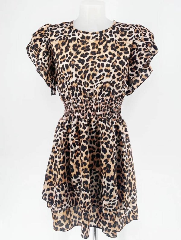 Precioso vestido con frunce en la cintura, abertura trasera y volantes.