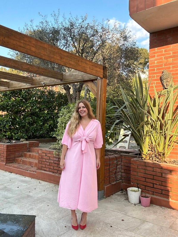 Precioso vestido que puedes dejarlo en forma de lazo o ponerlo de lazada☺️ sea como sea es un vestidazo para tu día o para eventos.
