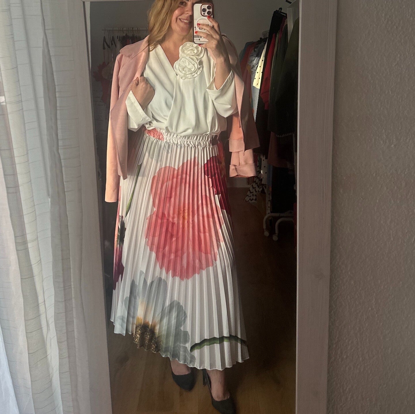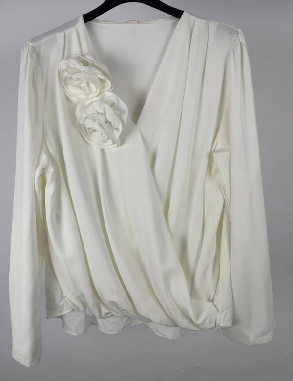 Preciosa blusa con dos broches y goma en la cintura.